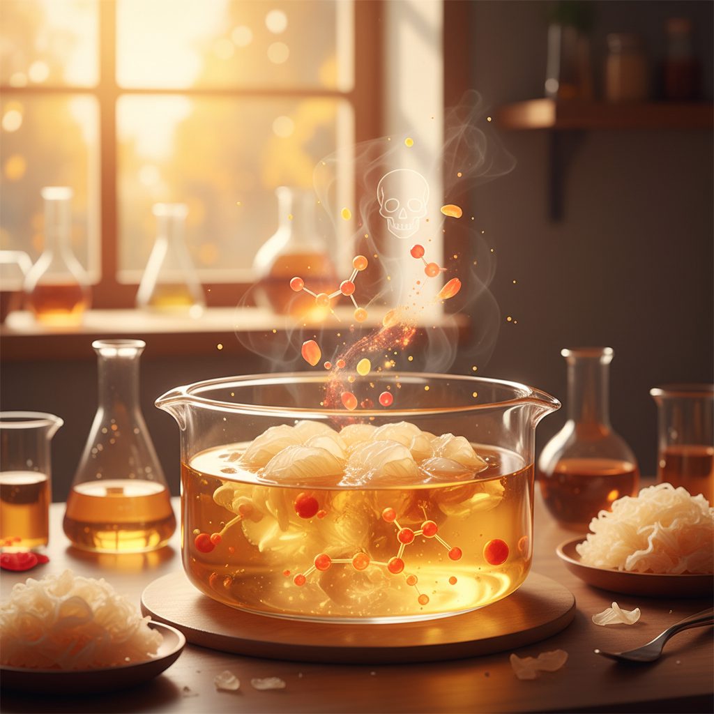 银耳作为一种传统的滋补佳品,含有丰富的氨基酸、银耳多糖、维生素以及铁、钙、磷等矿物质,具有极高的营养价值[1]。然而,关于“银耳炖久了会致癌”的说法并非空穴来风。据中国医科大学附属第一医院消化内科主任医师黄玉红提示,银耳炖煮时间过长会导致其营养成分遭到破坏,降低食用价值[2,3]。更严重的是,长时间存放或过度炖煮的银耳汤中,亚硝酸盐的含量可能会增加,这被认为是潜在的致癌风险因素之一[4]。正如网友所言,“银耳虽然是好东西,但如果处理不当,补药也可能变成毒药”,这种担忧在食品安全科学中有着明确的理论支撑。